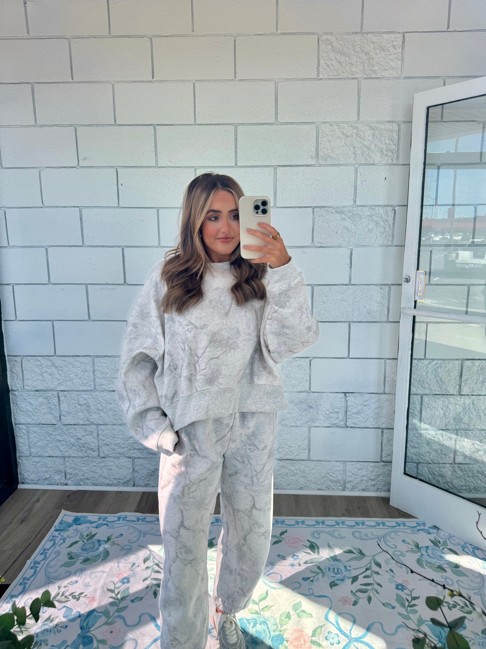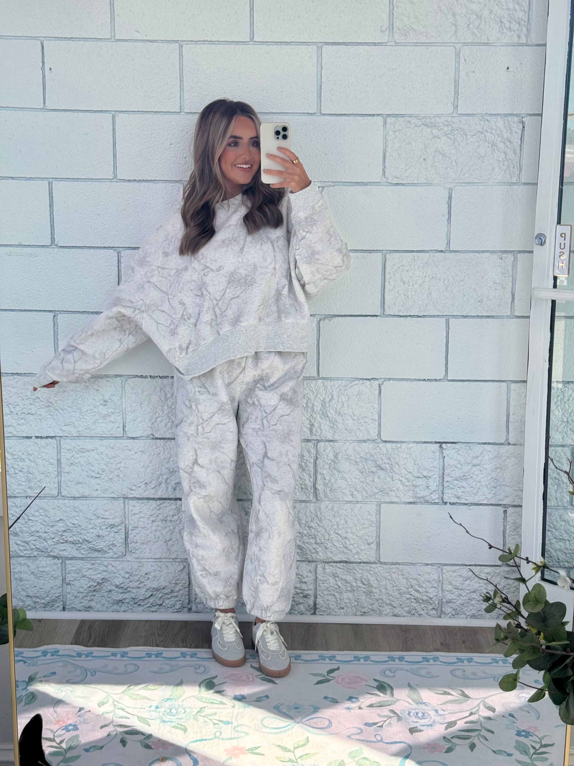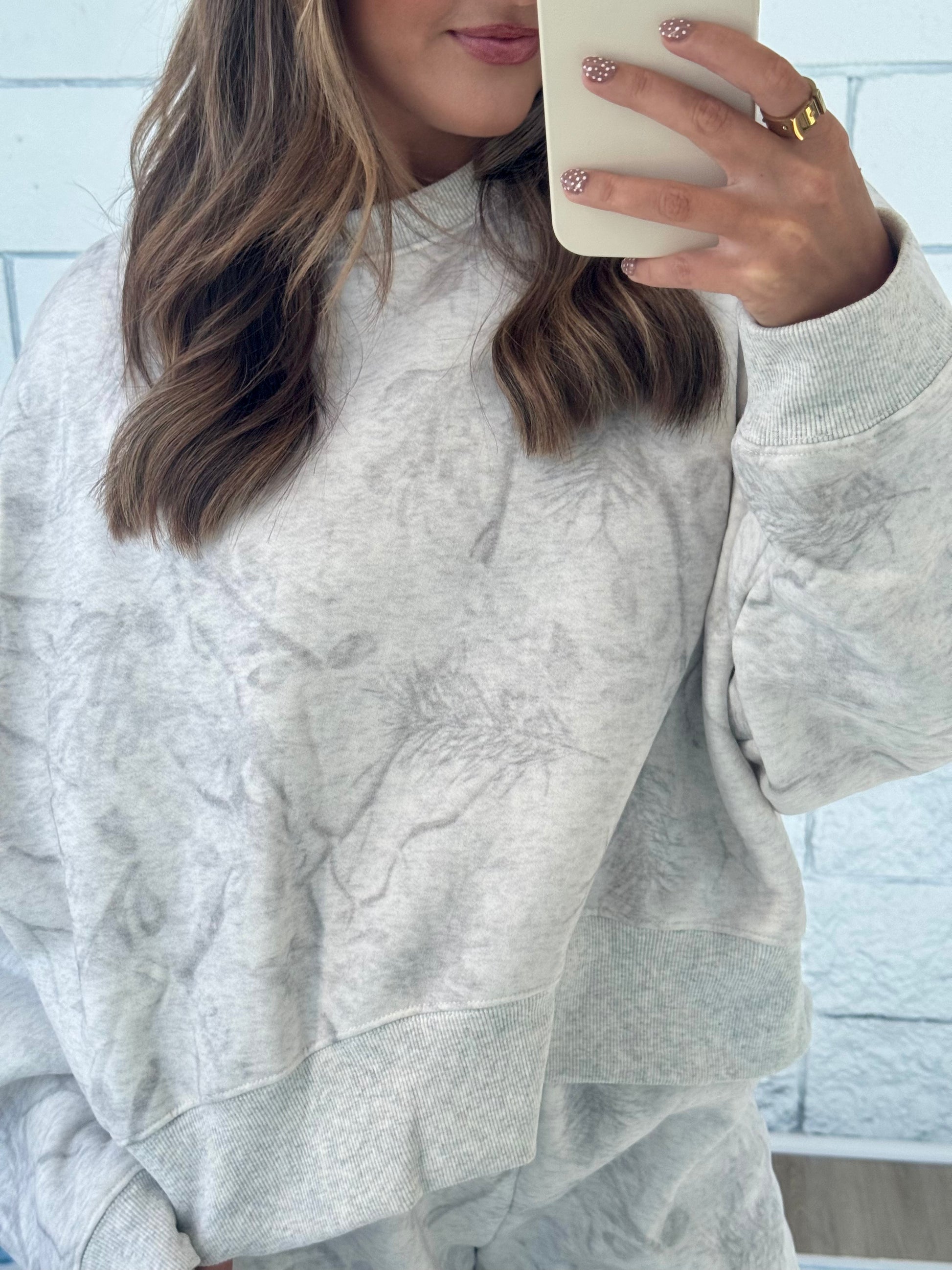 Stay cozy and stylish in the Goin' Nowhere Set, featuring a grey camo sweatshirt and sweatpants designed for crisp fall days. This matching set combines comfort with a trendy look, making it the ideal choice for relaxing at home or heading out casually. Elevate your fall wardrobe with this perfect blend of warmth and laid-back cool. I am usually a medium, but I like my comfort sets bigger for a more loose fit! I am wearing a size large.