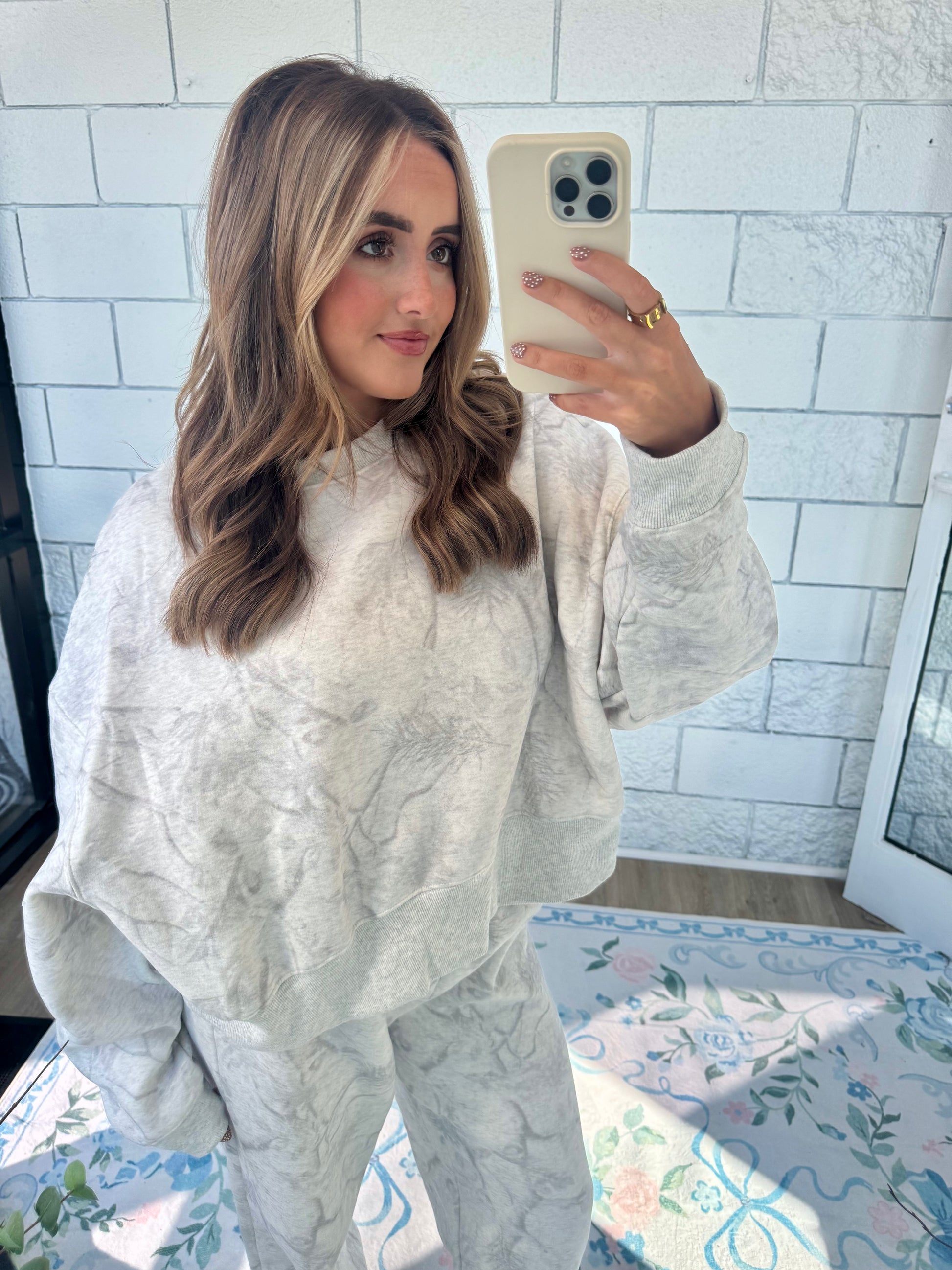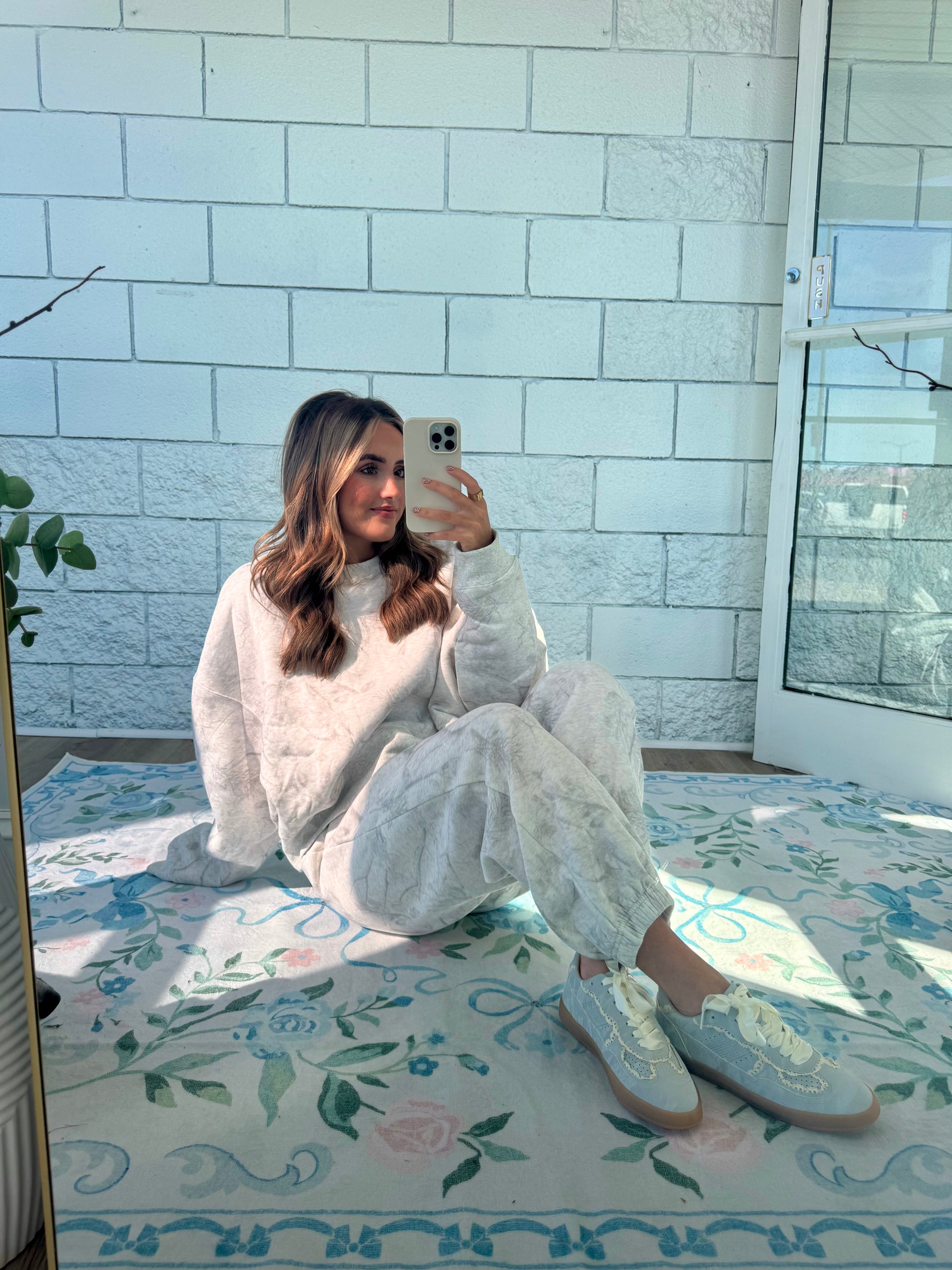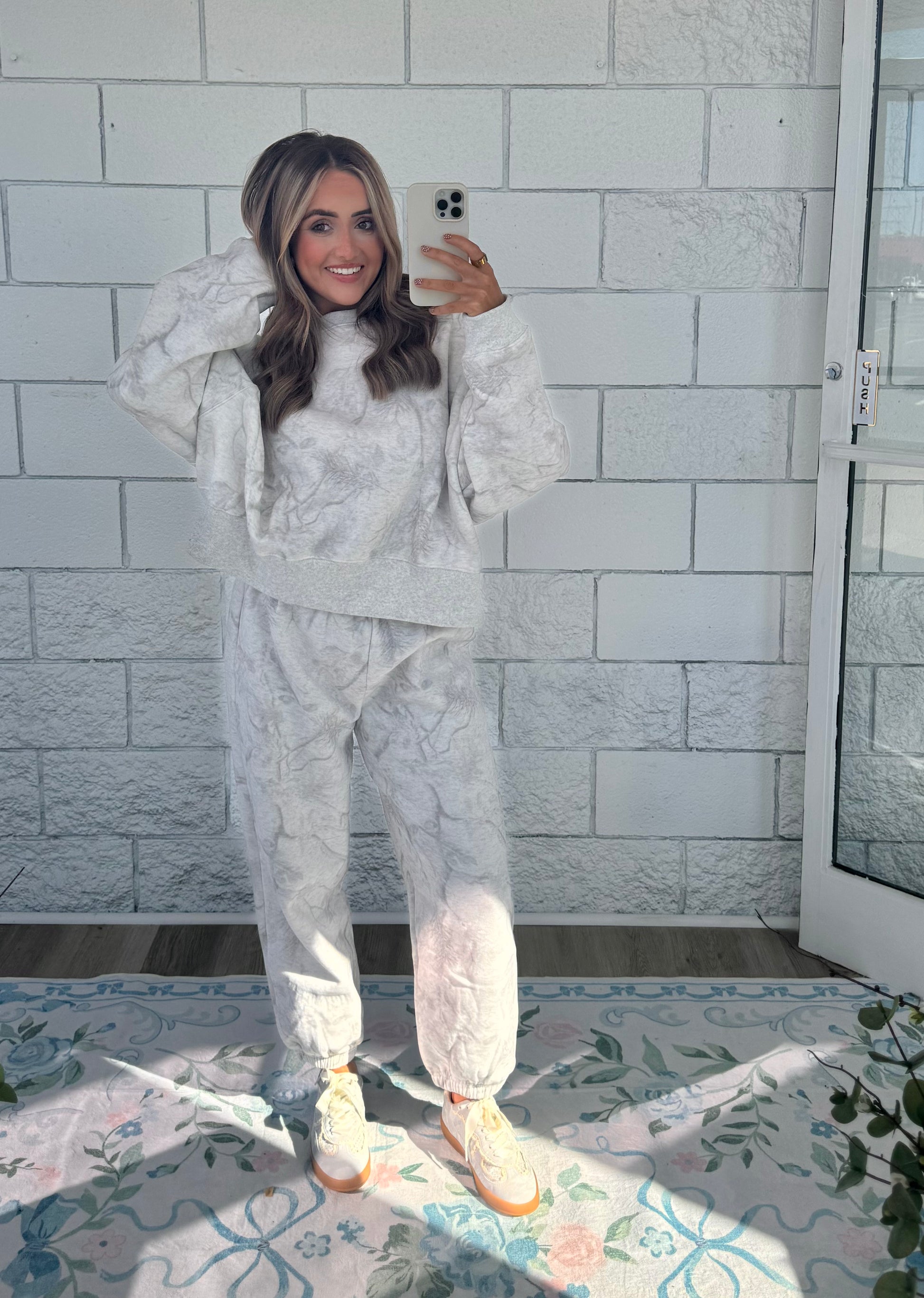 Stay cozy and stylish in the Goin' Nowhere Set, featuring a grey camo sweatshirt and sweatpants designed for crisp fall days. This matching set combines comfort with a trendy look, making it the ideal choice for relaxing at home or heading out casually. Elevate your fall wardrobe with this perfect blend of warmth and laid-back cool. I am usually a medium, but I like my comfort sets bigger for a more loose fit! I am wearing a size large.