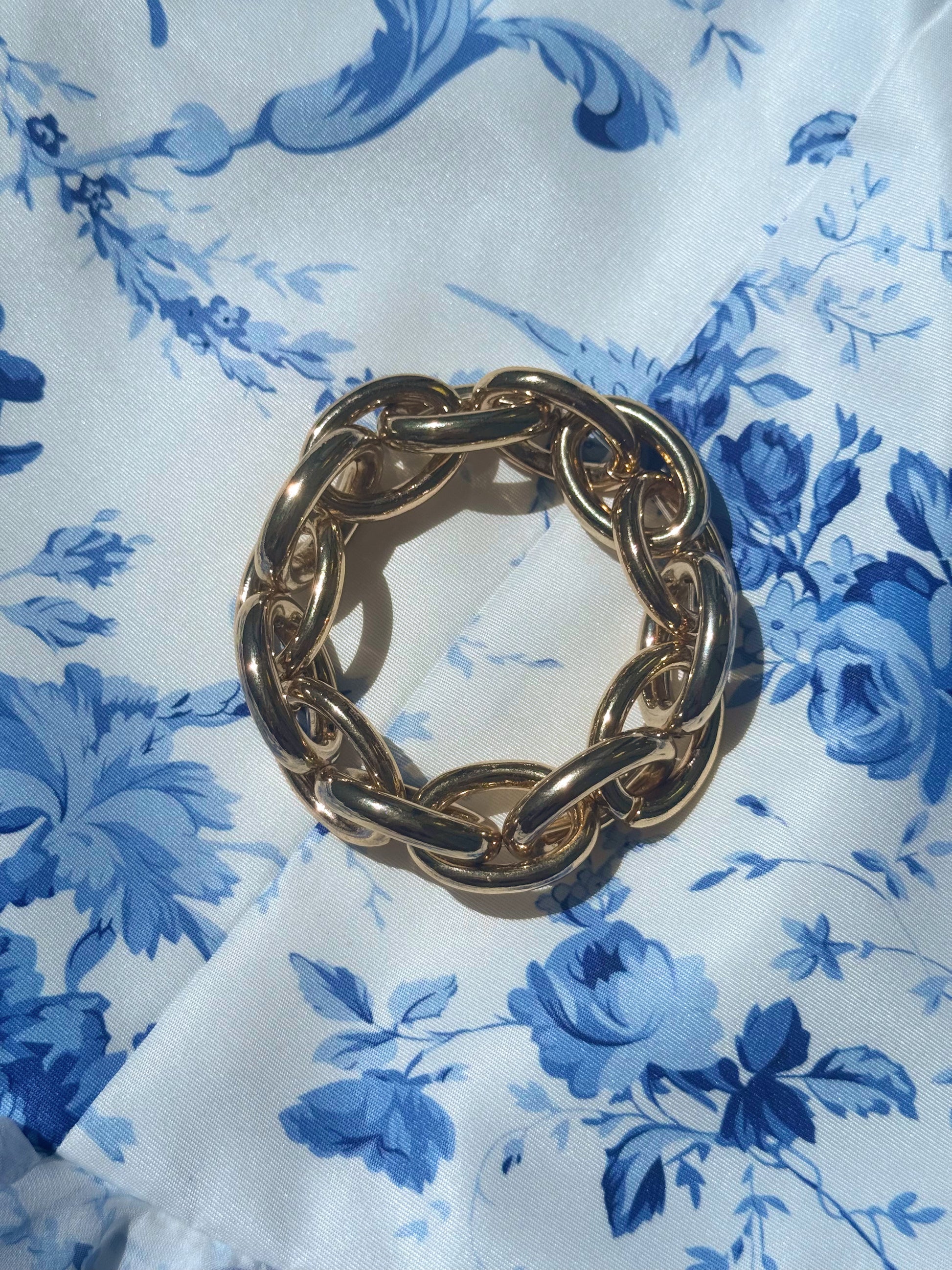 Experience the luxury and glamour of our Gold Chain Bracelet. The chunky design will add a touch of boldness to any outfit, while the gold chain exudes elegance and sophistication. Elevate your style and make a statement with this must-have accessory.