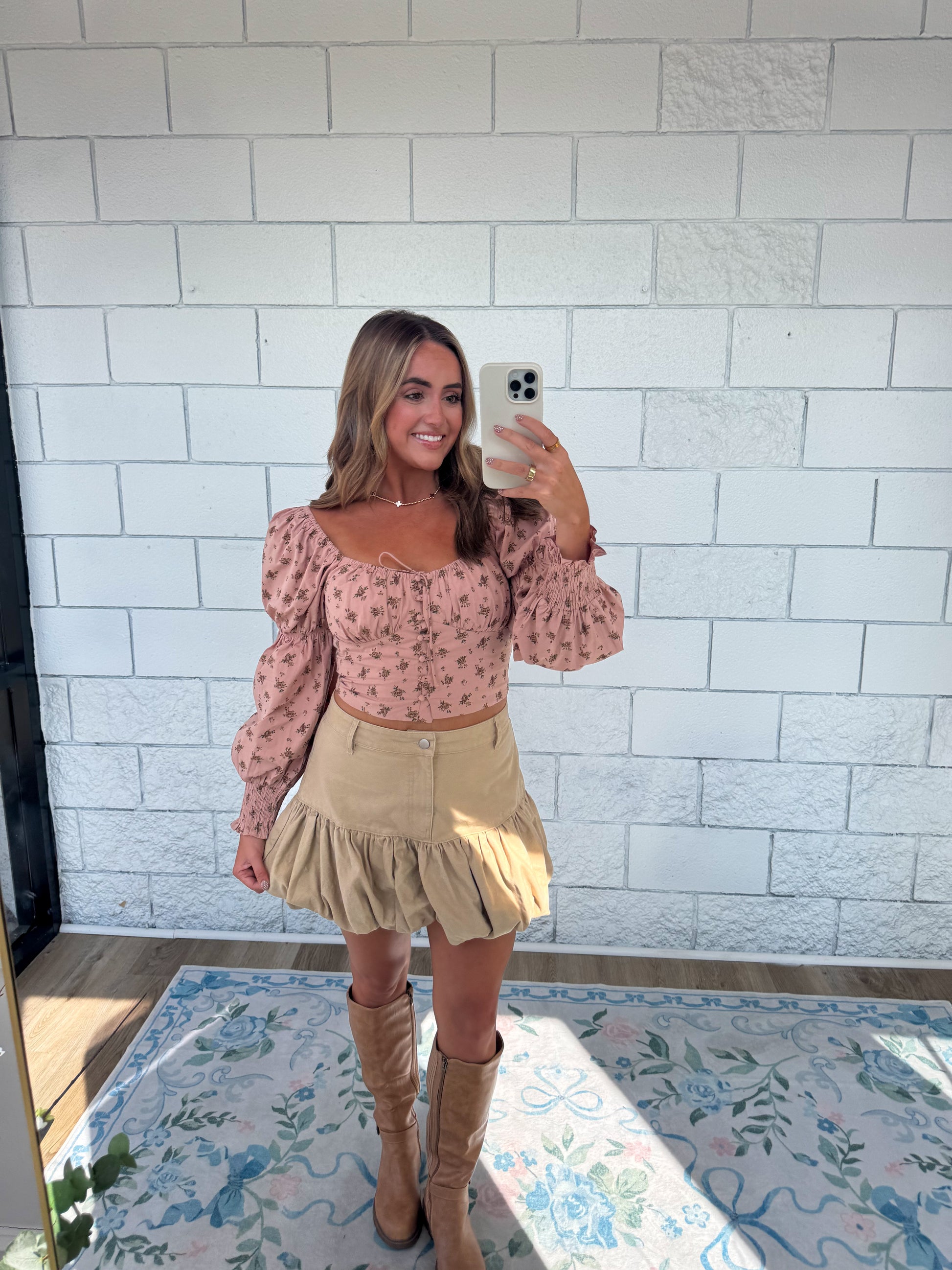 The Riverbend Skirt is a versatile beige denim mini skirt designed with a stylish bubble hem that adds a subtle, feminine flair. Crafted for comfort and fashion, it effortlessly elevates your casual outfits while offering a flattering fit. Ideal for any occasion, this skirt helps you stand out with a modern twist on classic denim. I am wearing a size medium!